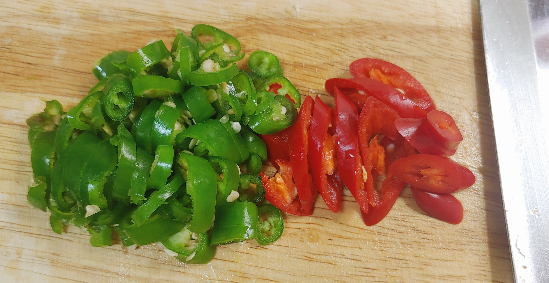 4. 대파는 송송 썰고 청양고추는 어슷 썰어 주세요.
