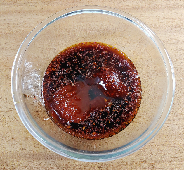 3. 볼에 다진 마늘 1큰술, 고추장 1.5큰술, 고춧가루 1큰술, 간장 1큰술, 올리고당 2큰술, 물 2~3큰술, 참기름 1큰술,