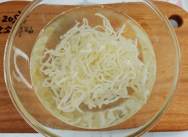살짝 씻어 물기를 빼면 부드러워져서 무침이나 볶음 했을 때 식감이 좋아집니다.