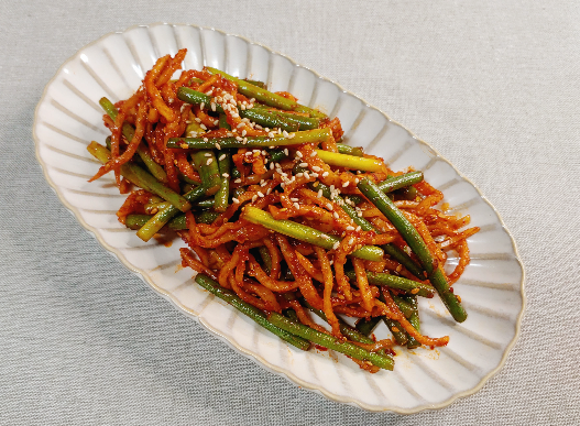 오늘은 아삭함과 쫀득함이 공존하는 매력적인 밑반찬, 마늘종 진미채 볶음을 더욱 맛있게 만드는 방법을 소개해보겠습니다. 같은 재료라도 진미채와 같이 더 맛있게 만들어 보세요.